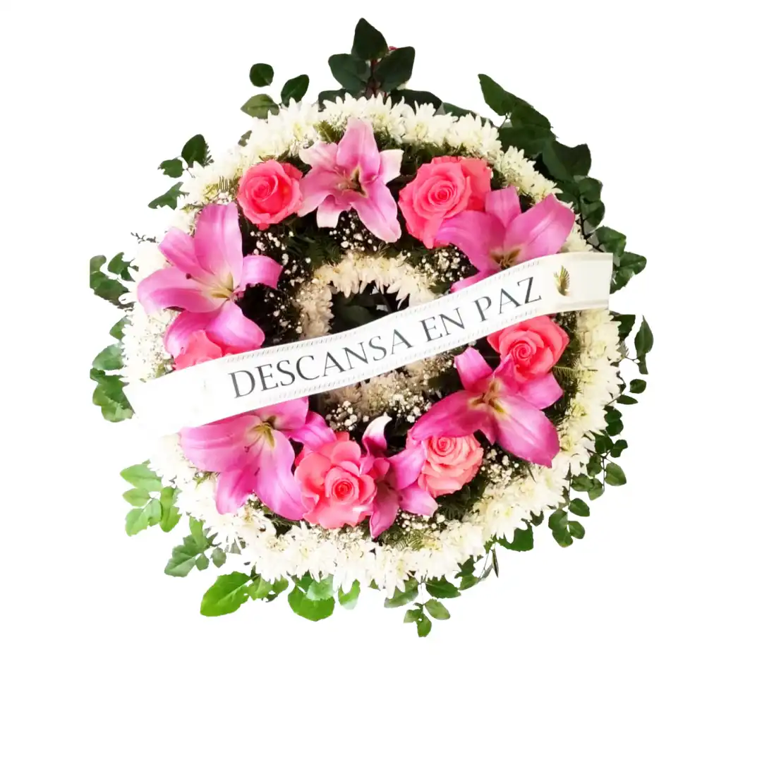 Corona redonda Elegante con Lilium Rosados y flores en su combinación