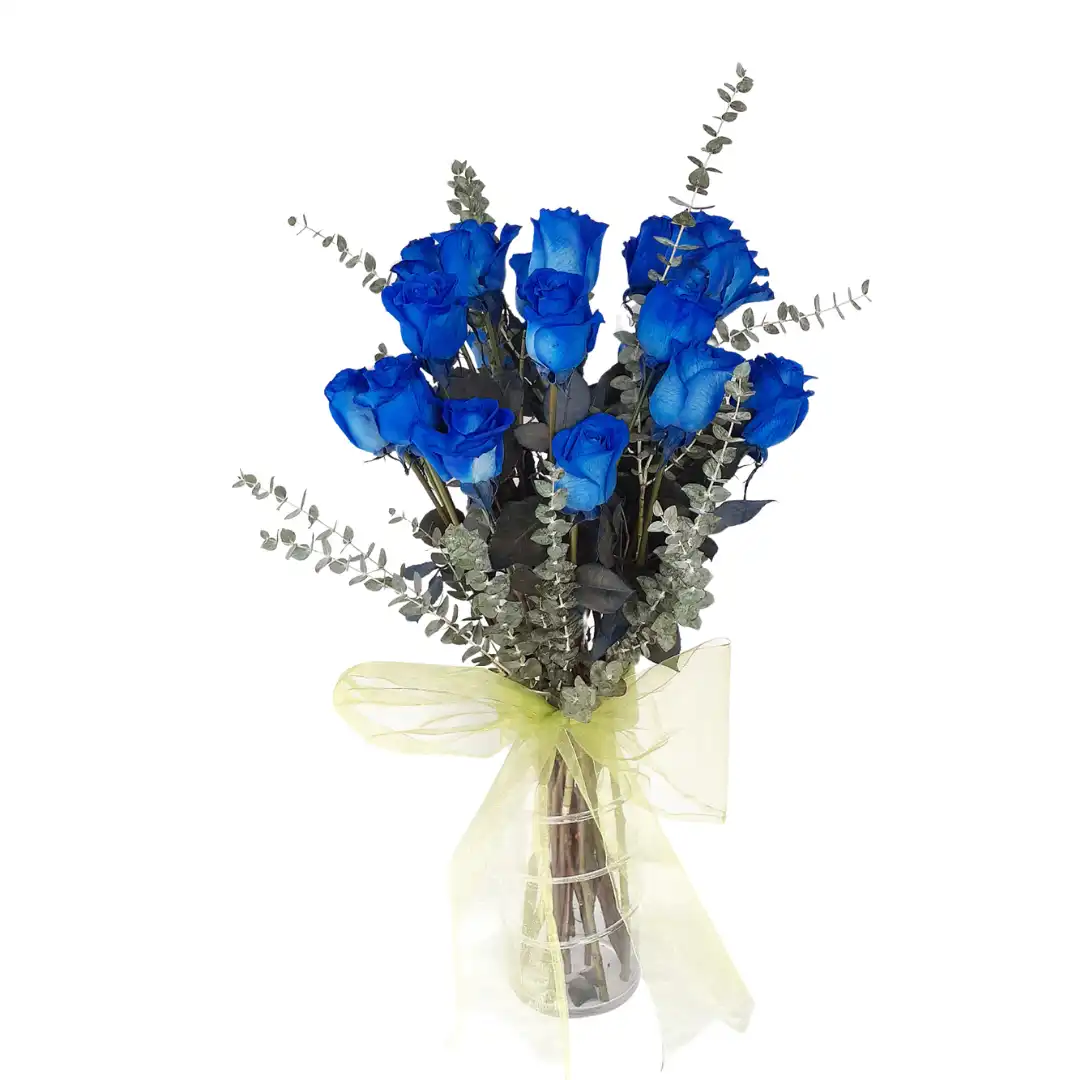 Florero 12 Rosas Azules
